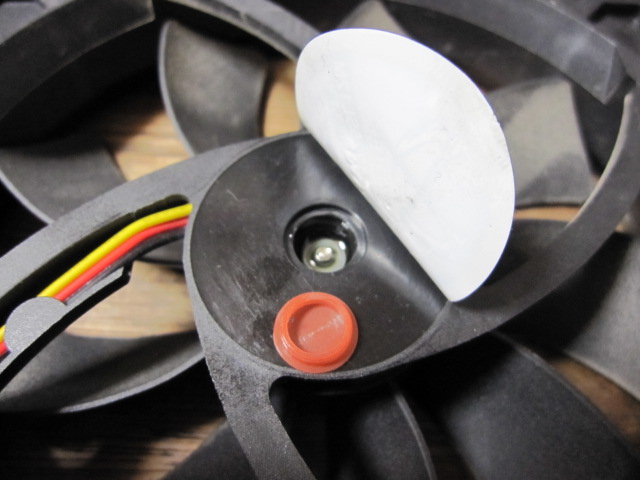 軸受けの部分のシールを剥がしてみると、ゴムキャップがはまってました。