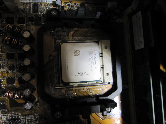 ばっちり、刺さりました。AM3のCPU AthlonⅡx2 250です。