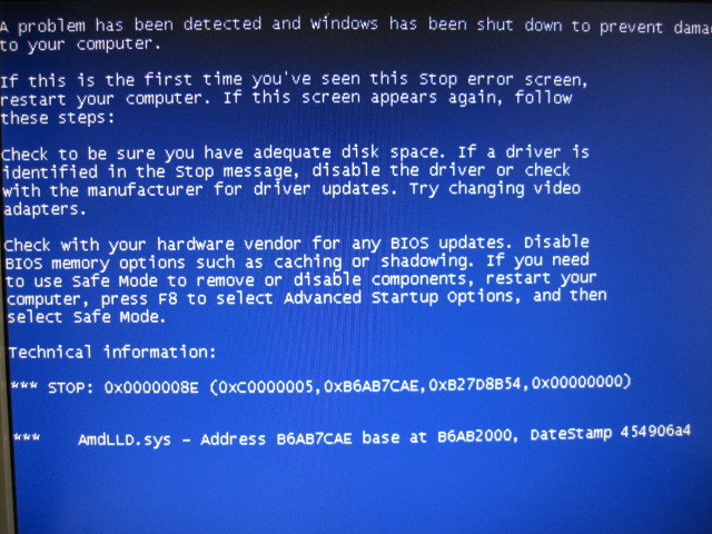 これを、セーフモードで再起動させ削除するか、windowsフォルダ-system32のAmdLLD.sysを